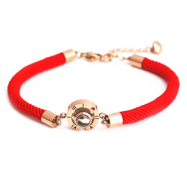 Fashion Women 100 Languages I Love You Memory Bracelet Steel Rose Gold Roman Numerals Crystal Charm Bracelets & Bangles Gifts